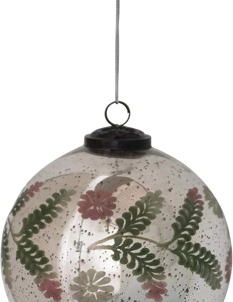 Round Etched Mercury Ball w/Floral Pattern, Silver, Pink