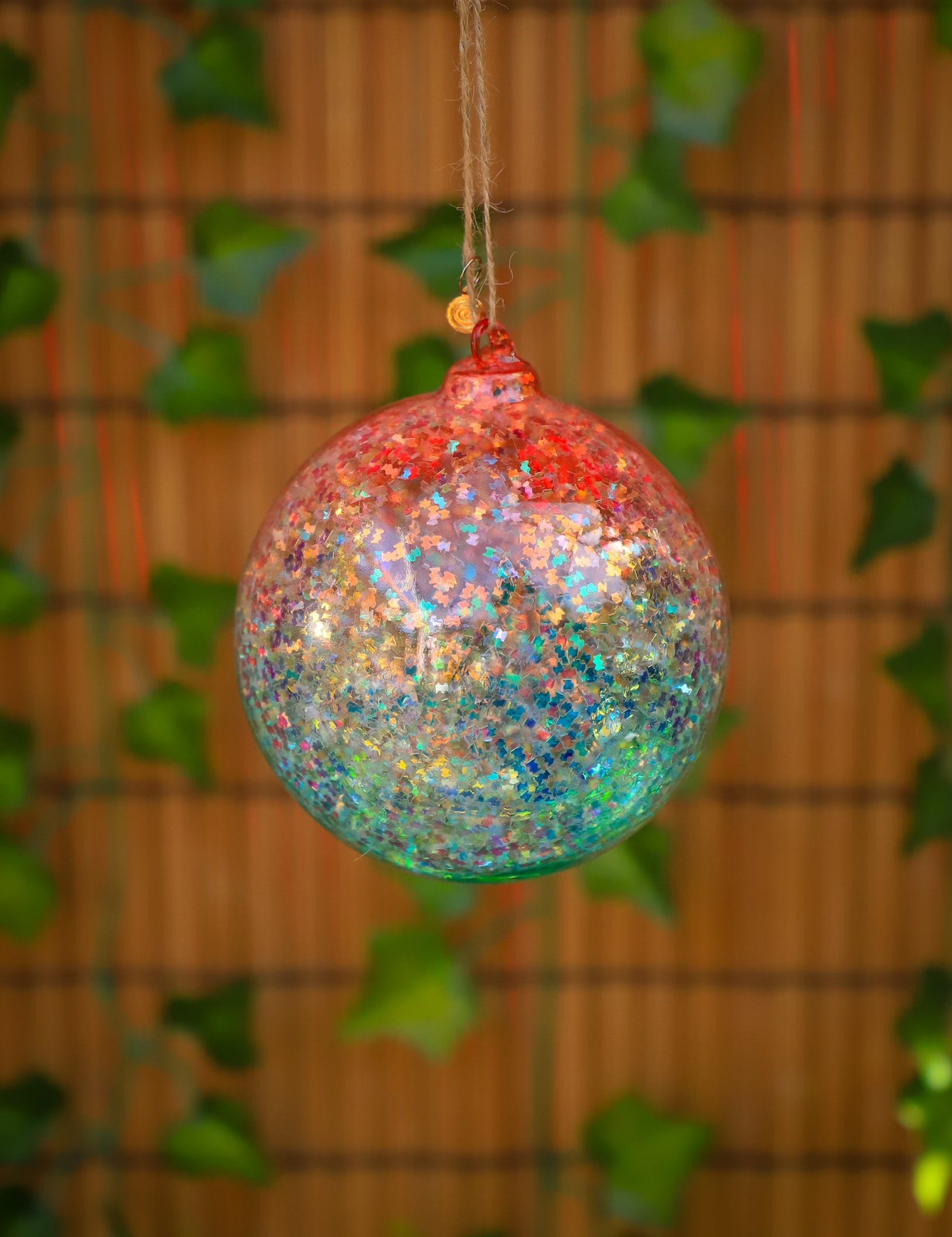 Iridescent Glass Glitter Ball Ornament - 5 Colors
