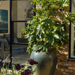 - Evergreen shrub or vine, 4-6 ft (1.2-1.8 m), in resulted from a cross of Fatsia japonica and Hedera helix. Its appearance is generally intermediate between that of the two parents. Leaves alternate, simple, leathery, lustrous dark green, 10-25 cm across, 5 lobed palmate, with cuts 1/3-1/2 to the base.