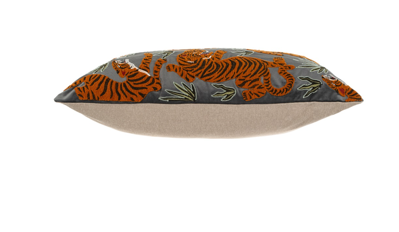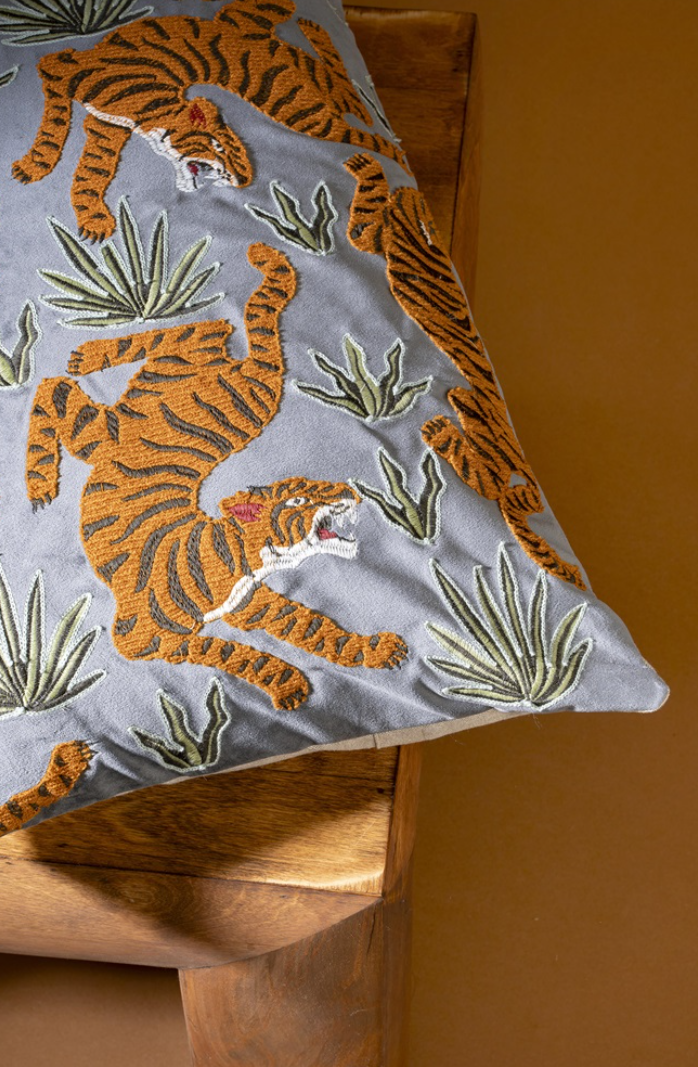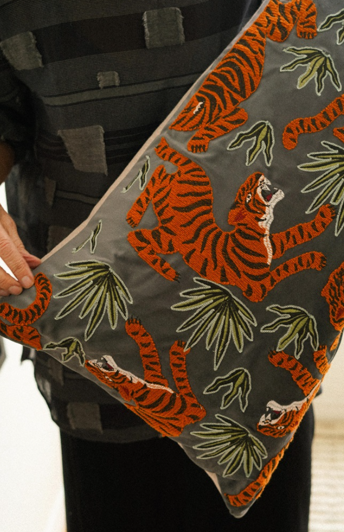 16x24 Tiger Tales Pillow: A Bold Statement with Playful Embroidery