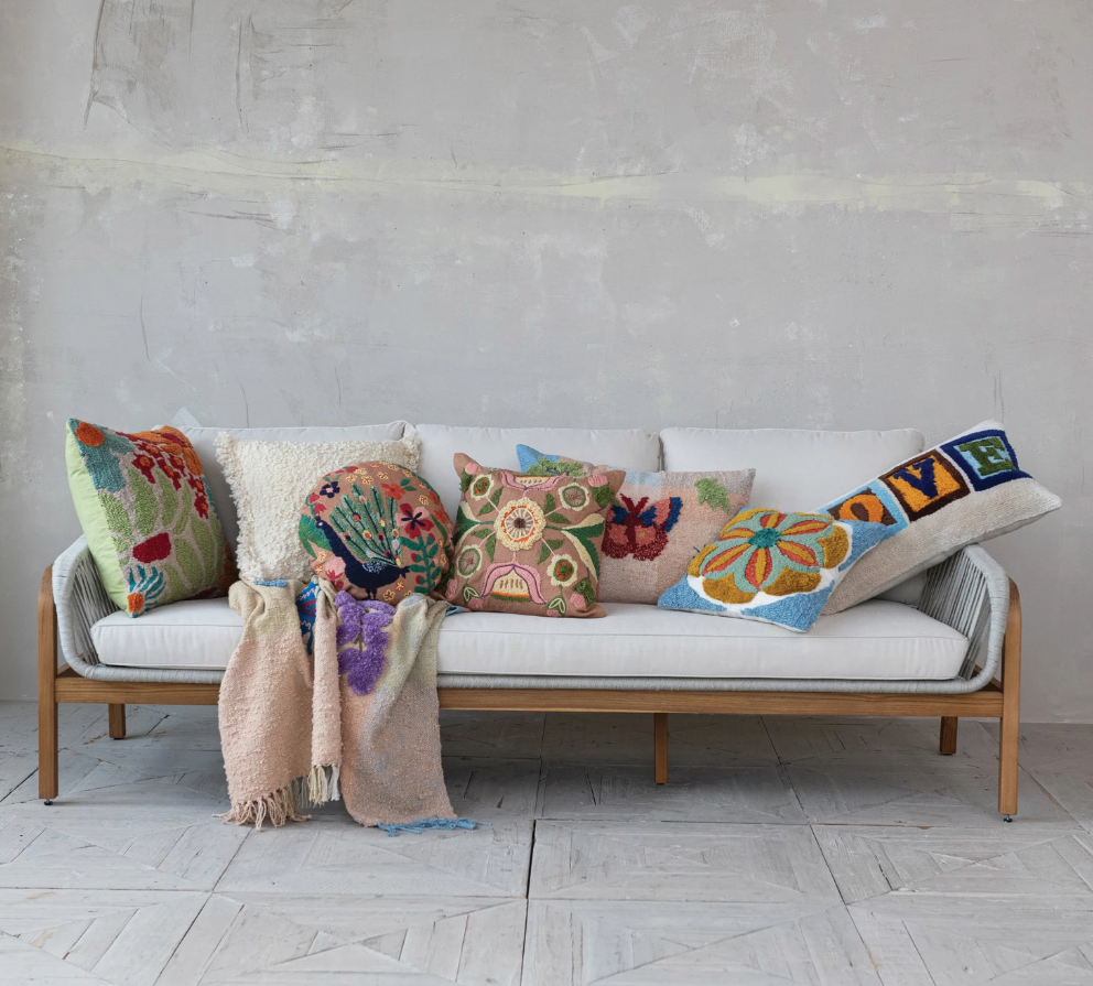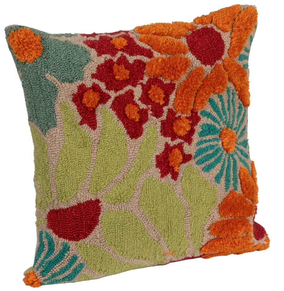 20" Square Fabric Tufted Indoor/Outdoor Pillow with Flowers