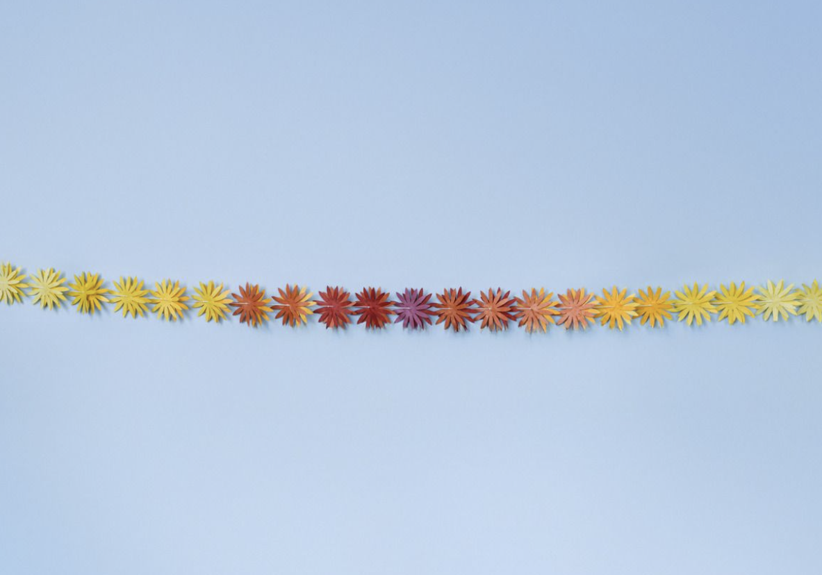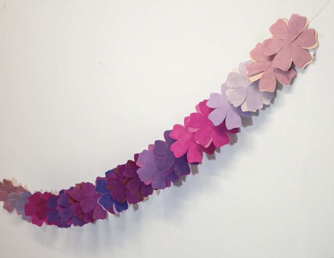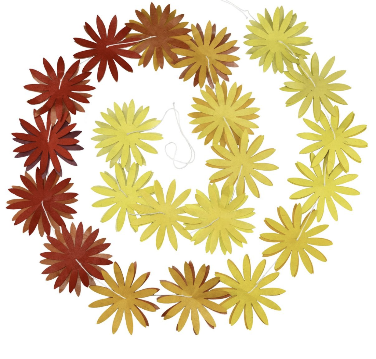 This festive eco-garland is made with sustainably-harvested Himalayan paper. The color info card at the package back shows how the unfurled garland looks. Ready for slatwall or basketing. Sales benefit community schools managed by the producers. Made in Nepal.
