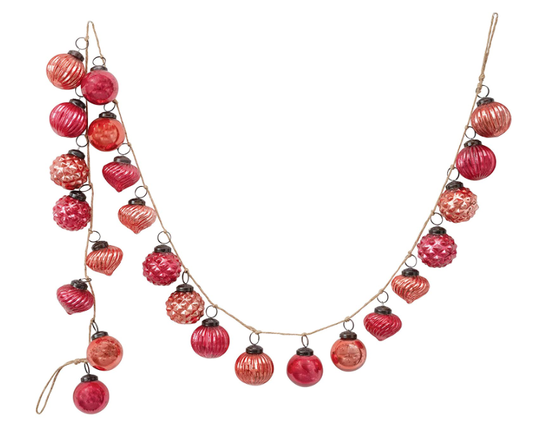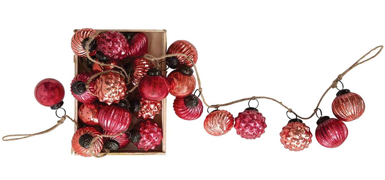 72" Red Embossed Mercury Glass Ornament Garland