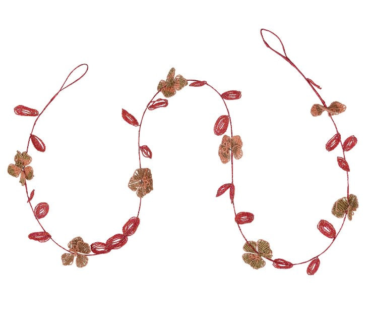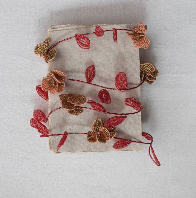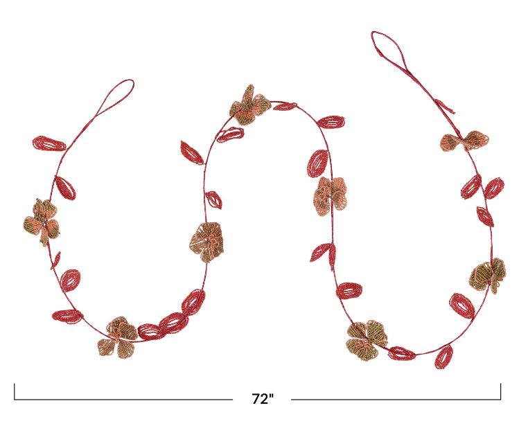 72"L Pink Glass Bead Wired Leaves & Flowers Garland