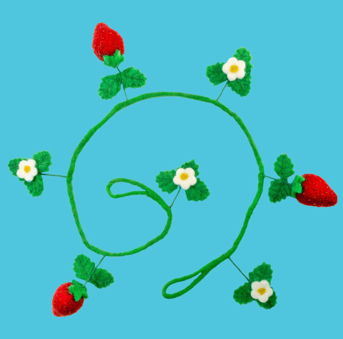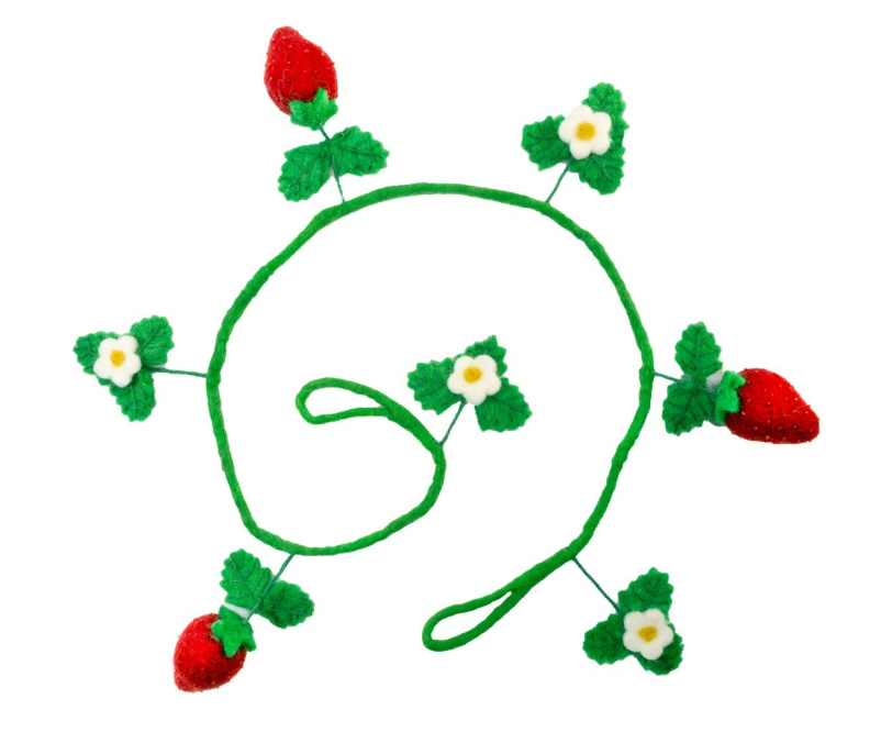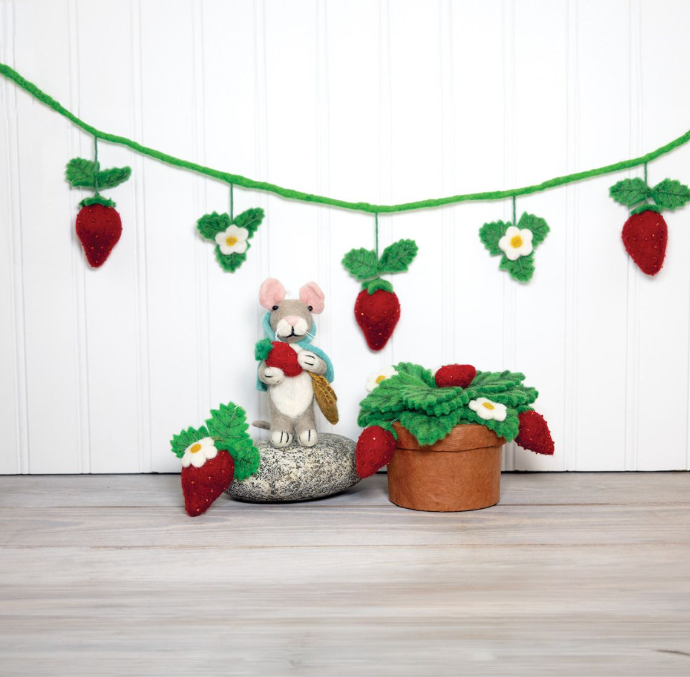 This tasty-looking garland is a sweet treat for your customers! Touching is believing when you feel the sumptous texture of each individually handfelted natural wool strawberry. Ends include 3"l loops for handy hanging. Designed and made as a member of the Fair Trade Federation.
