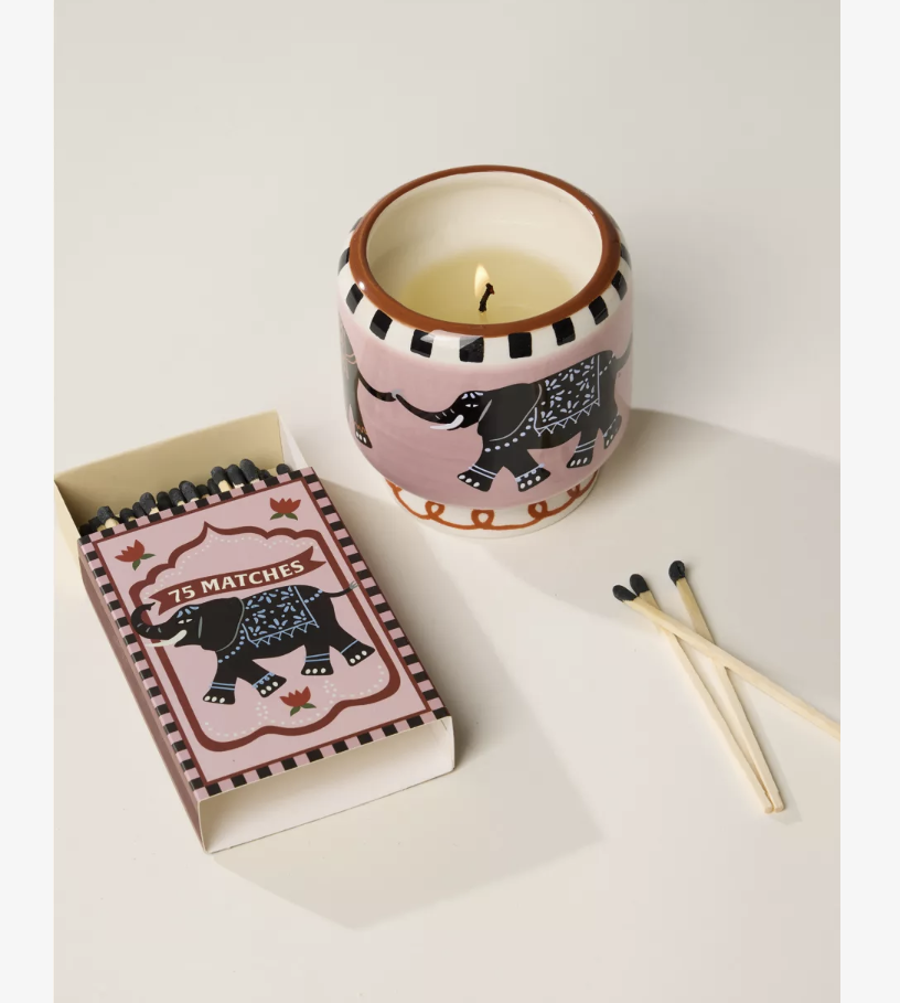 FEATURES • INSPIRED BY THE COLORS AND PATTERNS OF MOROCCO! • MATCHBOXES INCLUDE 75 MATCHES WITH COLORED TIPS