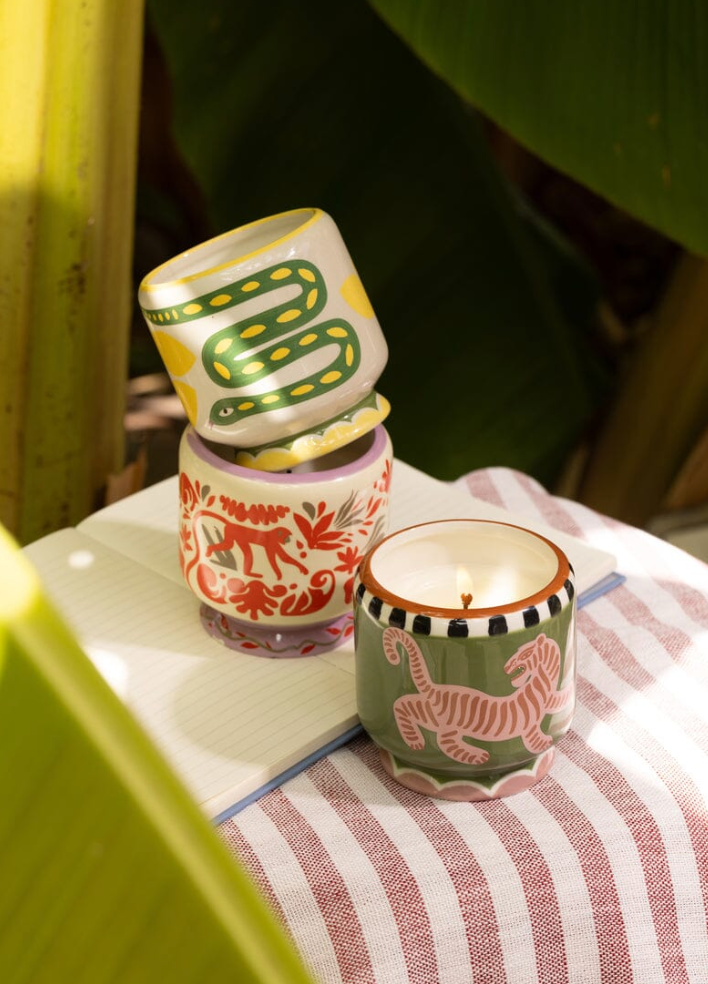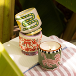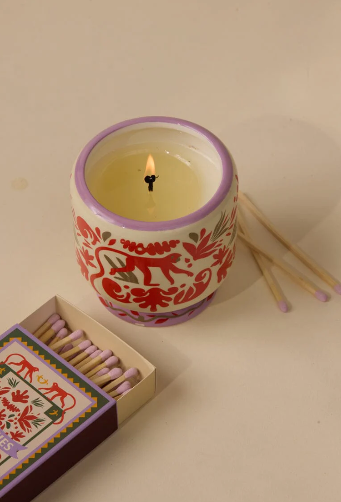 8 oz ceramic candles with hand-painted details have been filled with bold fragrances to match the imaginative design and ignite your senses. Each pairs perfectly with our new coordinating matches!