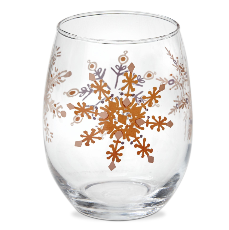 Classy with a touch of fun + entertainment! this stemless wine glass features playful snowflake designs in trendy colors for the season. Perfect for holiday gifting. mix and match with a range of drinkware choices from tag.