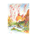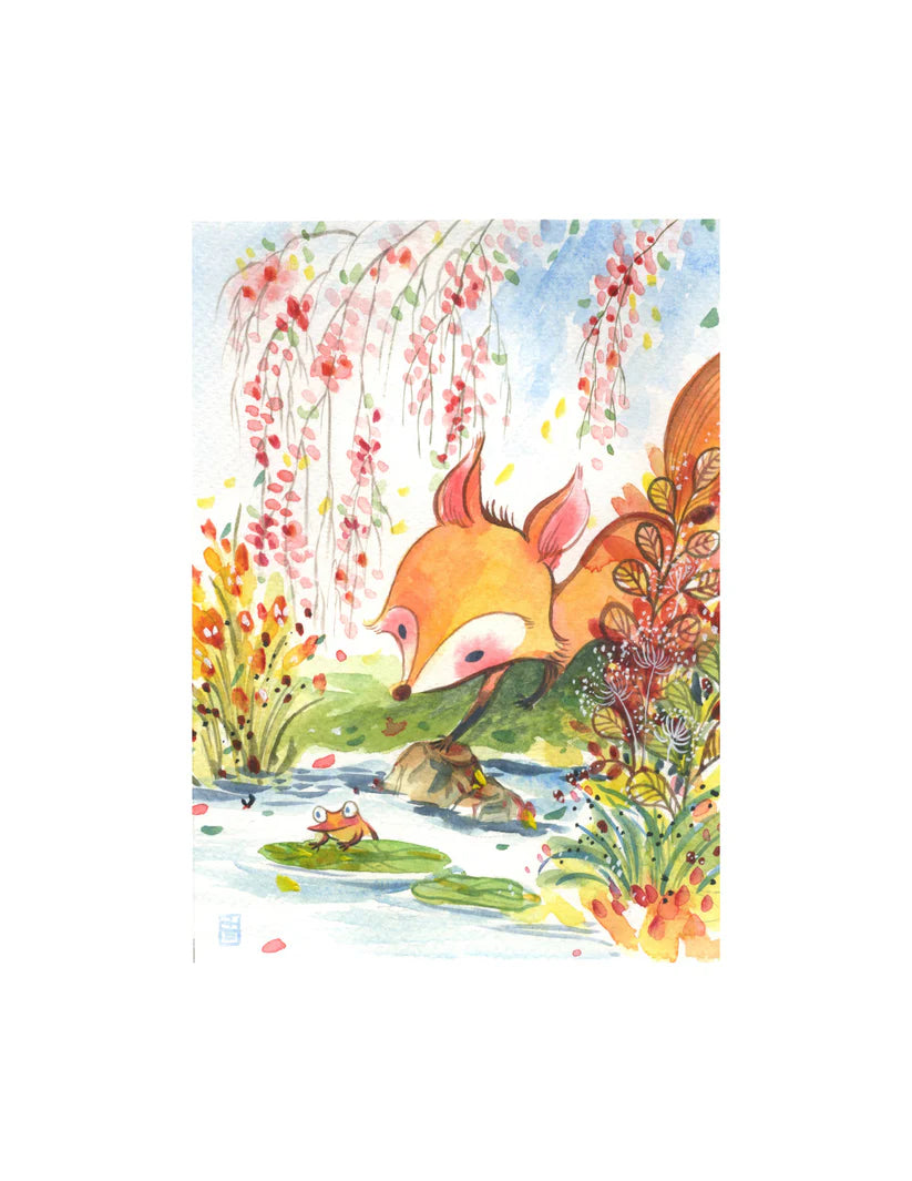 Alina Chau Watercolor - Little Fox and Frog in Spring Whimsical Art