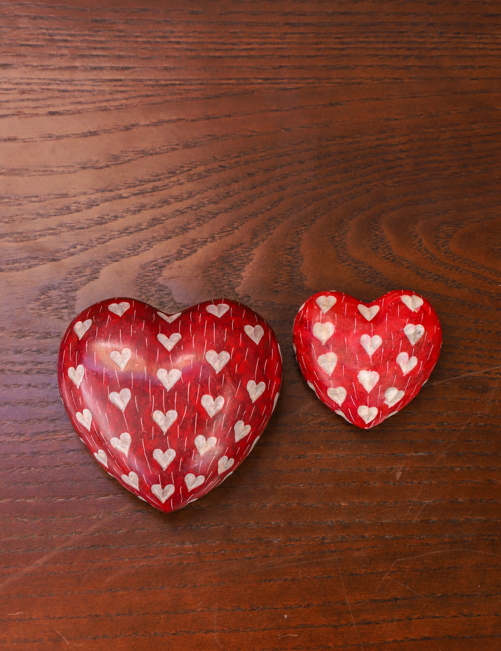 Handmade in India these smooth soapstone hearts feature carved designs. Perfect for Valentine's Day they add a romantic and calming effect to any space and make for a thoughtful loving gift to be cherished throughout the years.