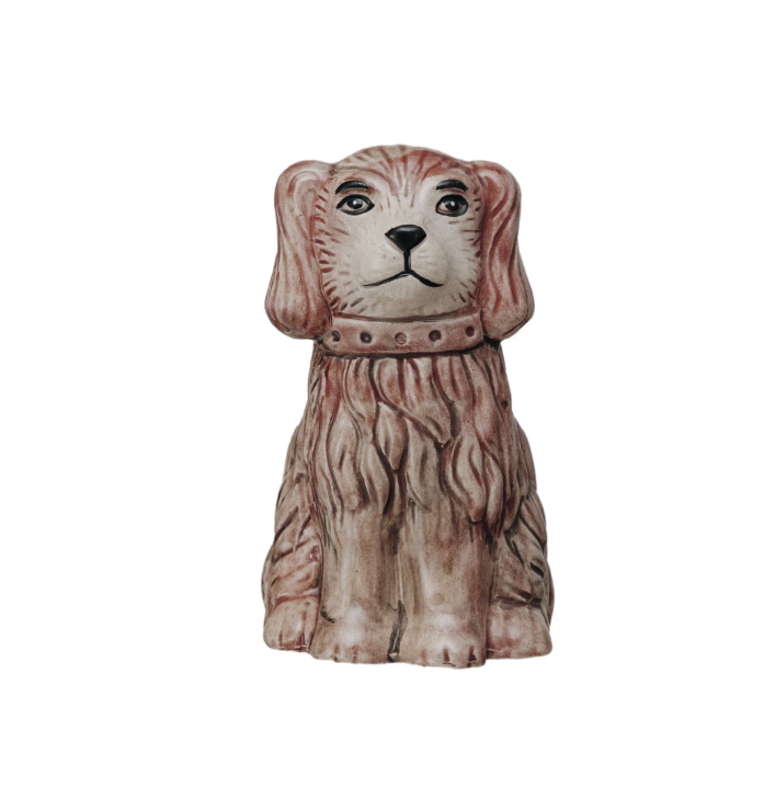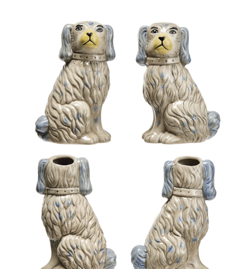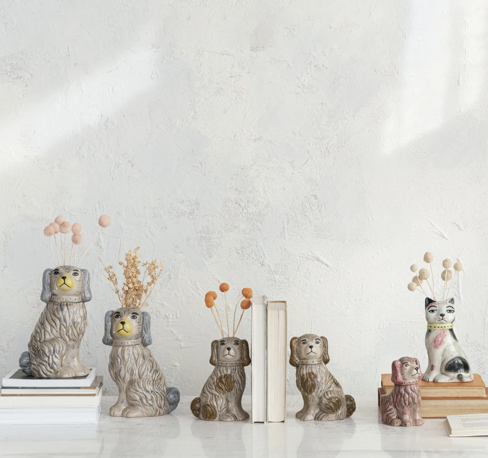 Hand-Painted Stoneware Vintage Reproduction English Staffordshire Dog Vase, Crackle Glaze