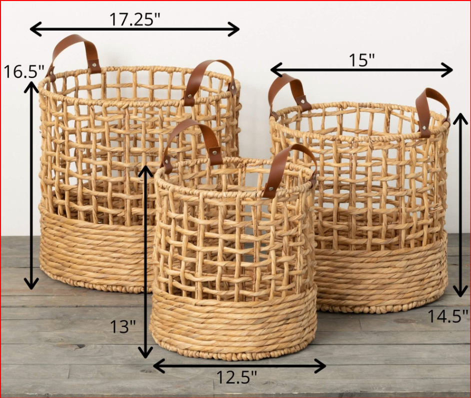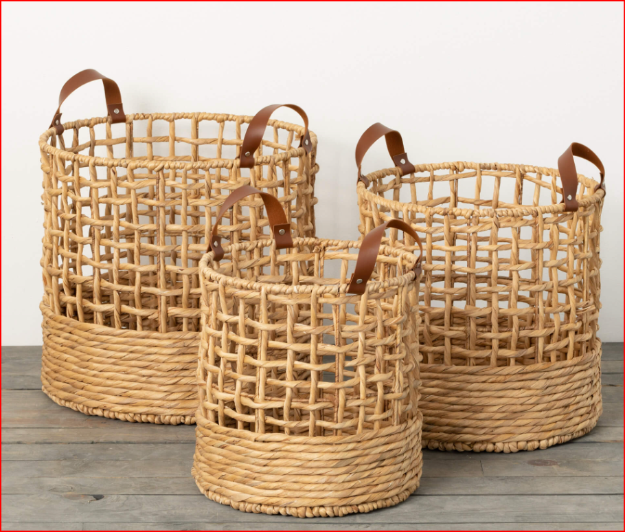 You will want to use these handled round baskets in every room! Nesting in three various sizes, the natural open weave design will showcase whatever it holds in a true modern style. The attractive look fits any aesthetic, and its size and shape are suitable for any space.