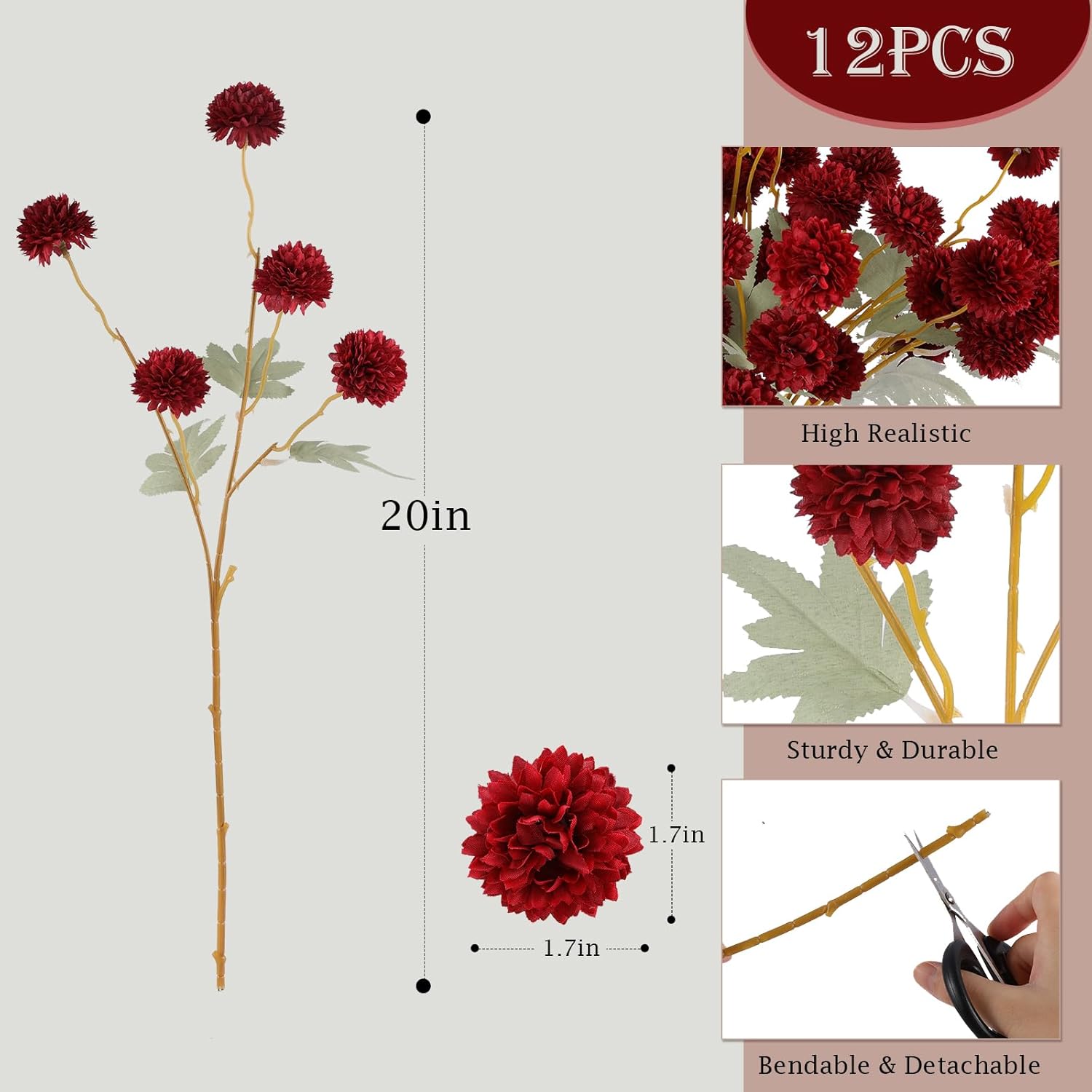 - Realistic and Durable Kiku Flowers: The Artificial Kiku Flowers are crafted from high-quality faux silk, providing a realistic appearance that brings the beauty of nature into your home. Each stem features soft petals and vibrant colors, ensuring these faux silk pompon mum Flowers will brighten your home.