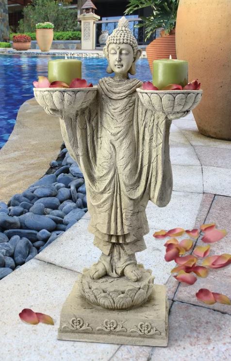 Add a touch of enlightenment to garden or meditation spot with the Bodhisattva who embodies the compassion of all Buddhas and whose name translates as "Lord Who Gazes Down at the World." From the flamed aureole atop its ornamented head to its meditative downward gaze, this spiritual Bodhi statue is a timeless Oriental garden focal point. Cast in quality designer resin, serene Design Toscano exclusive is graced with the distinctive aged stone finish that characterizes Asian antiques. Another breathtaking Asian garden statue from Toscano!