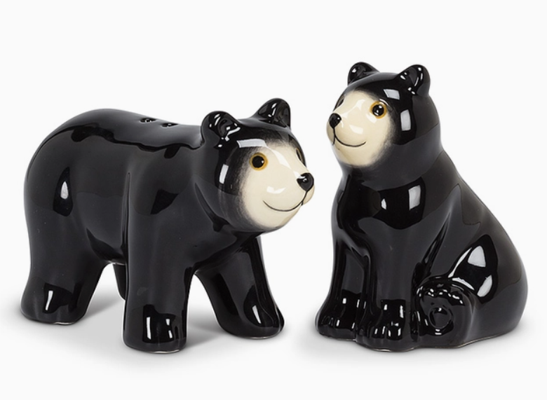 Brighten the bare accessories on your dinner table with this delightful set of Black Bear Salt & Pepper Shakers. Crafted out of ceramic, this pair of adorable bears — one sitting, one walking — is just what you need to spice up your meals and your kitchen decor.