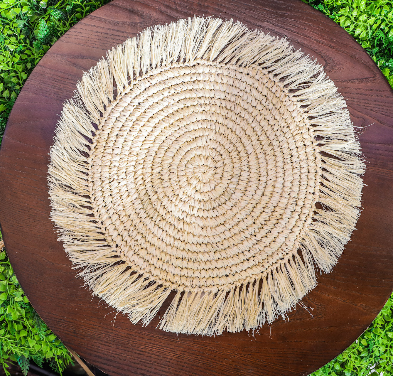 These natural woven placemats add a textural tropical touch, giving your home that relaxed island feel. They are handmade from raffia in Bali by local artisans.