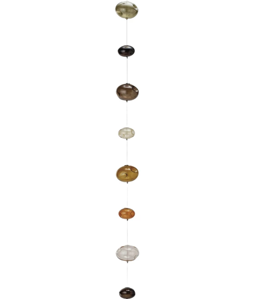 This Hand-Blown Glass Bubble Garland in brown is a testament to the art of glassblowing. Each bubble captures the light, creating a dance of reflections that enhance the natural beauty of the piece. The metal framework provides a strong foundation for the delicate glass, ensuring that the garland can be displayed securely. It measures 47.25 inches in length, a substantial size that allows for a dramatic display of its artisanal beauty. Whether it's adding a touch of whimsy to a special event or infusing a daily dose of charm into the home, this garland is a unique piece that celebrates the fusion of art and nature.