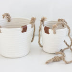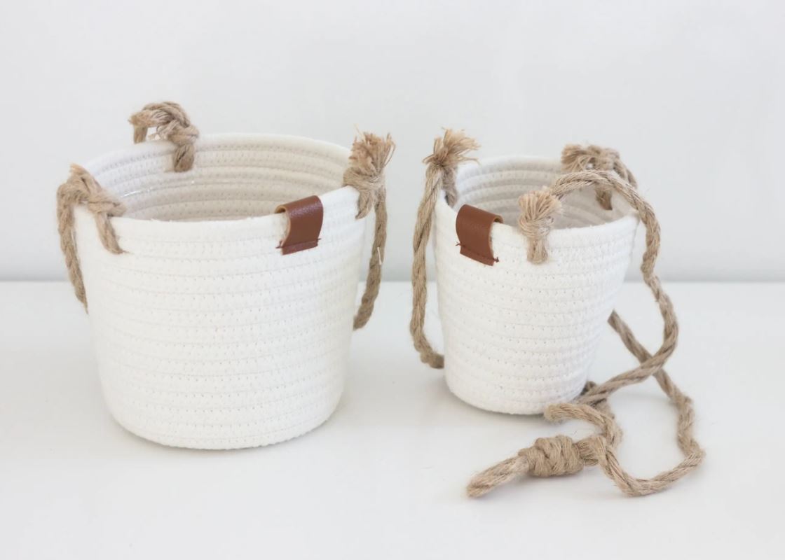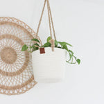 Boho Cotton Rope Hanging Planter Basket with Leather Accent - 2 Sizes