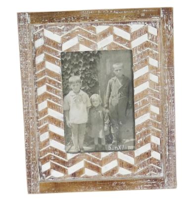 The Foreside 5 x 7 Bowden Picture Frame is the perfect addition to your mountain house, southwestern, or mission style decor! Tiny etch marks carved into the wood are filled by the white wash finish and create an intense texture on the front of the frame. This item would go wonderfully with other feather or arrow pieces!