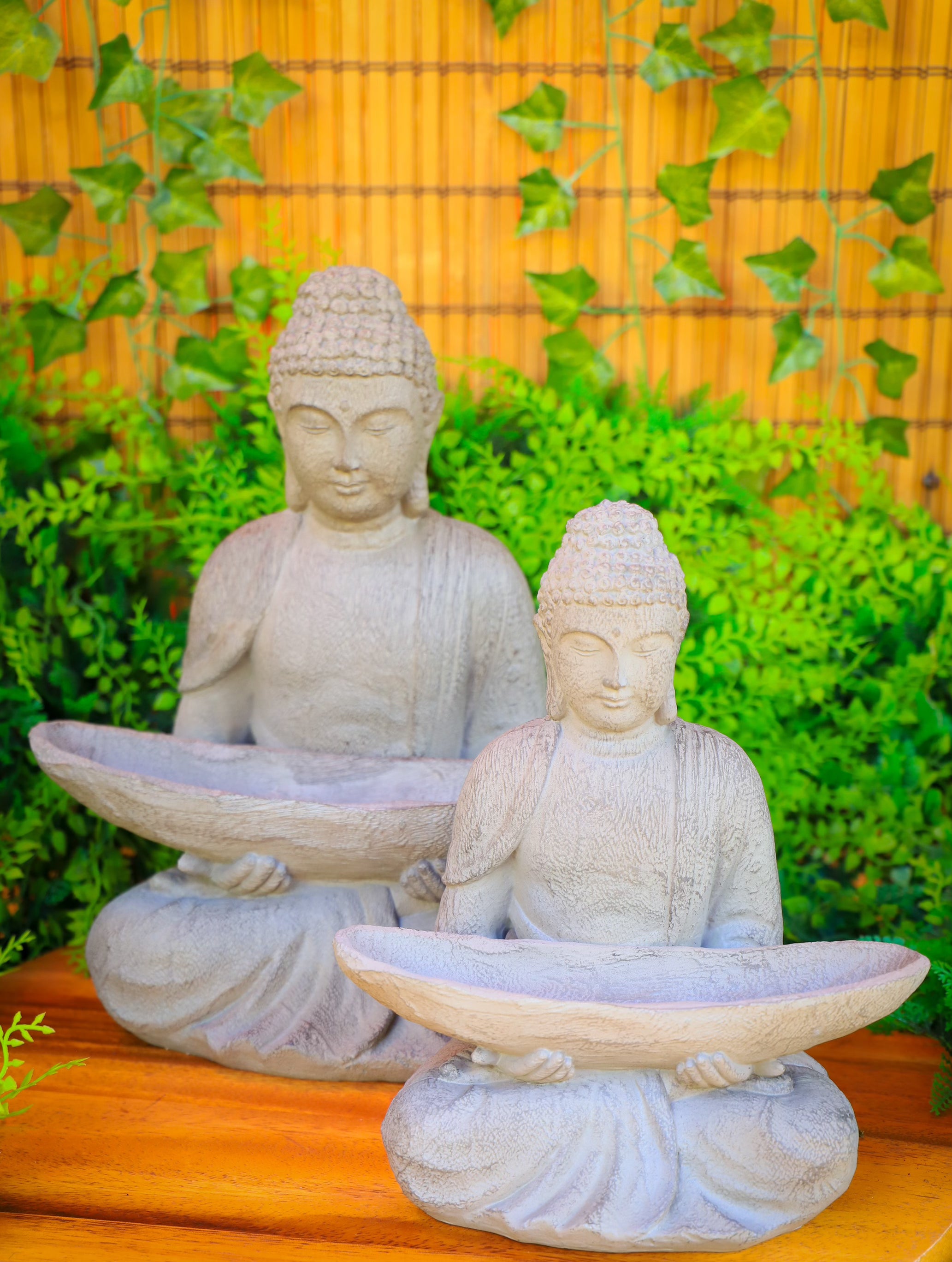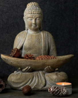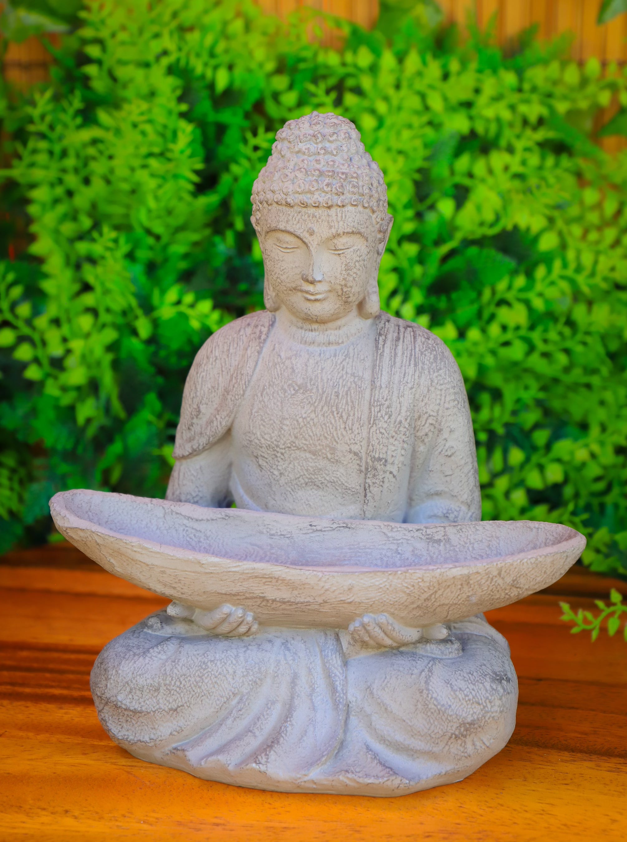 The sandy earthen color of this Buddha conveys a sense of antiquity and ancient history. Produced in high quality cold-cast resin – this very special statue has a beautiful verdigris finish. The sturdy design creates a sense that Buddha is floating – ethereal and supreme in wisdom.