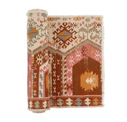 Embrace this contemporary statement runner of natural woven cotton with embroidered graphic motifs in on trend colors in your space. This textile will enliven any table or could be casually on display draped over the back of a chair. Coordinating Cairo pillow is available.
