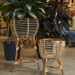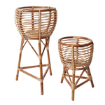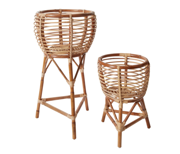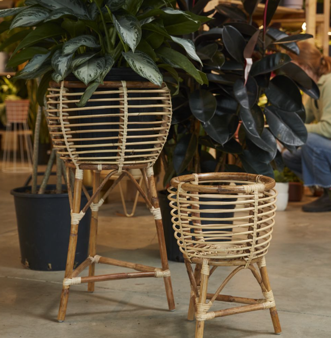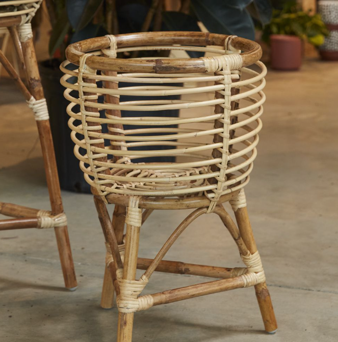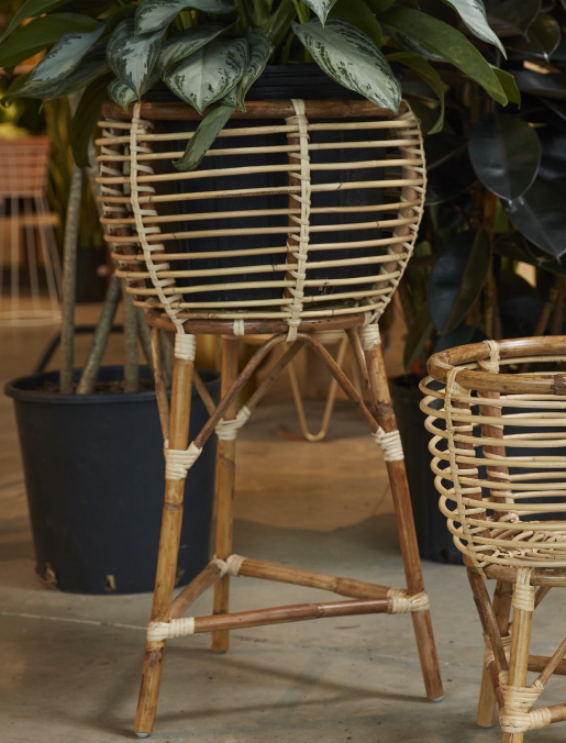 Boost visual interest & add natural color & trendy, textured design to the room with the sustainable rattan Clancy Stand. 100% handmade in Indonesia with a mix of rattan & bamboo, this round indoor planter offers an eye-catching, artistic touch while displaying large drop-in plants. Lightweight but sturdy, this piece is perfect on its own or layered alongside the smaller size for a rattan collection.