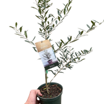 - Description: Common Olive is bathed in stunning panicles of fragrant white flowers along the branches from late spring to early summer. The fruits are showy black drupes carried in abundance from mid-summer to early fall. The fruit can be messy if allowed to drop on the lawn or walkways and may require occasional clean-up. It has dark green evergreen foliage which emerges light green in spring. The glossy narrow leaves remain dark green throughout the winter. The smooth gray bark adds an interesting dimension to the landscape. This plant is primarily grown as an ornamental, but it's also valued for its edible qualities.