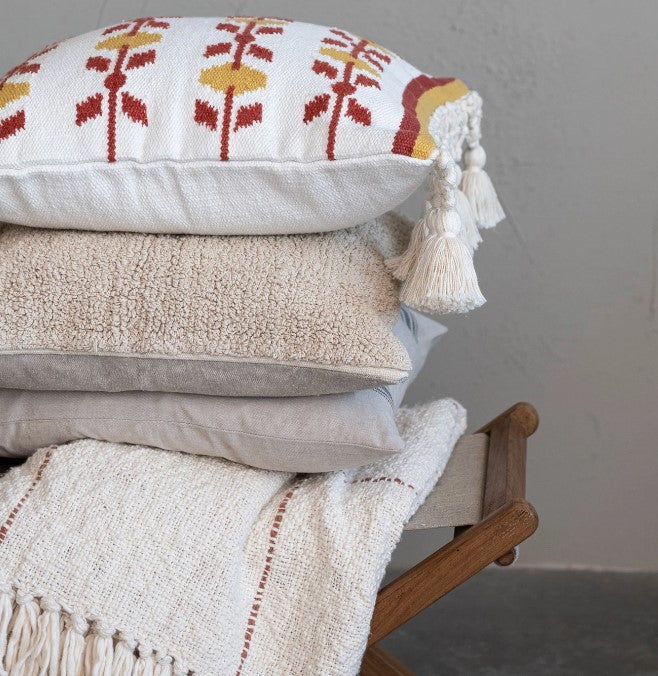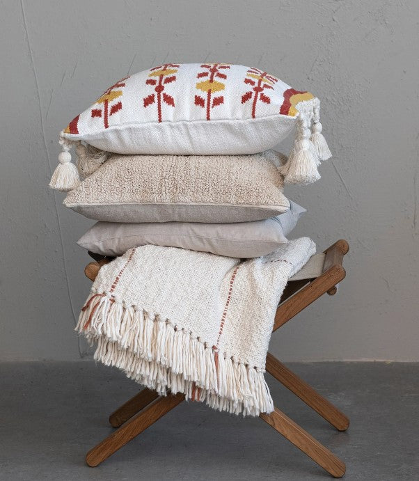 Hand-Woven Cotton & Wool Pillow with Embroidery