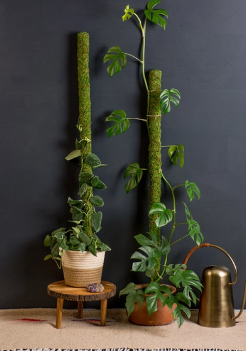 In nature, many forest plants achieve lush growth by climbing along tree trunks and attaching their roots to moss-covered bark. SuperMoss Moss Pole is a naturally absorbent support pole that helps aerial roots take hold and creates an ideal habitat for many climbing and upright plants. It's the next best thing to growing your plants in a forest! The SuperMoss Pole includes metal pins to easily secure the branches and foliage. This natural plant support comes in four different sizes and two naturally preserved colors.