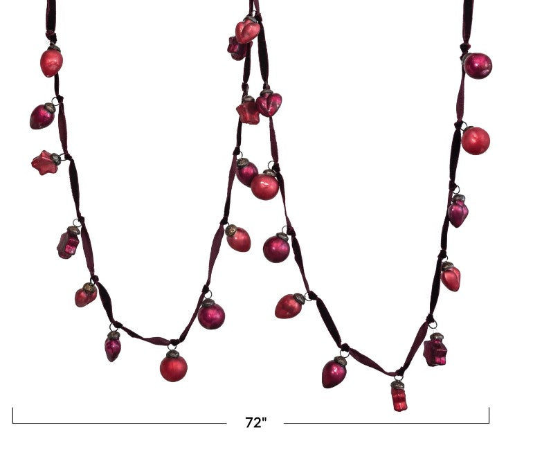 72" Red Embossed Mercury Glass Ornament Garland