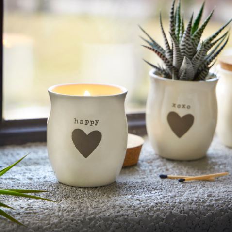 - Materials: soy wax blend, stoneware, cork, paper cotton wick