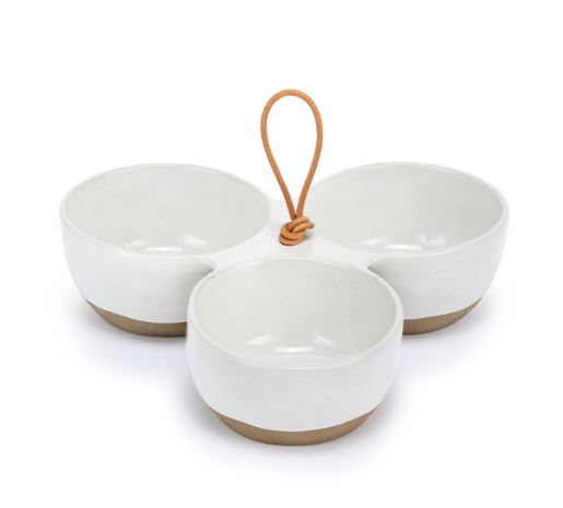 Whether you're hosting a big party or a small, cozy gathering, offer your edible masterpieces in style with the White Lotta Delish Tri-Bowl. This handcrafted serveware is sure to help you set a homey atmosphere while entertaining friends and family alike.