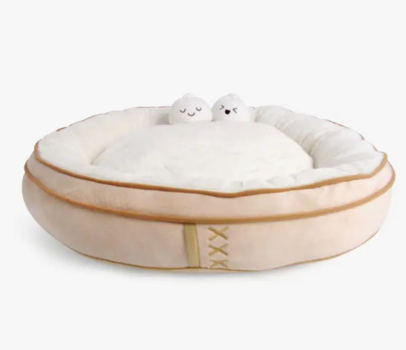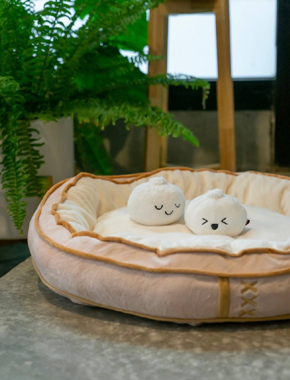 Dim Sum Pet Bed With Two Dumpling Crinkle Toys