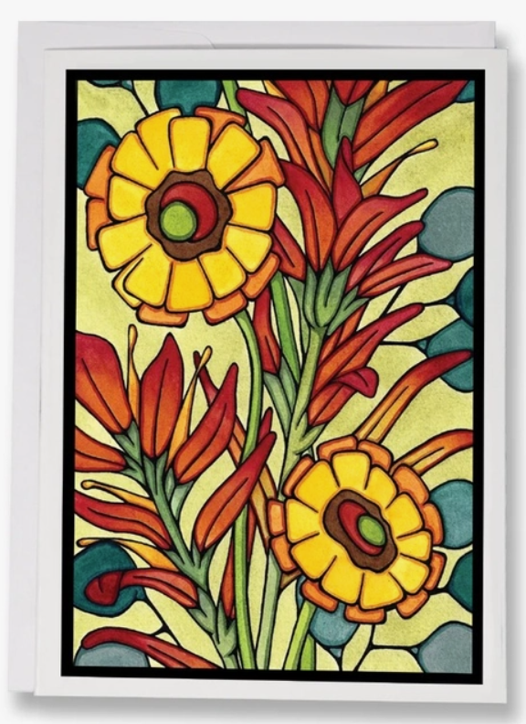 Every bright & bold, blank Sarah Angst Art Greeting Card measure 5" x 7".