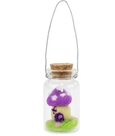 A fresh take on the current micro-decorating trend! Hand-felted scenes nestling within a small corked glass apothecary bottle are evocative and inviting. Made to hang or enhance a shelf or table top display. Includes a Fair Trade Home & Garden tag.