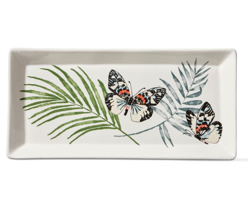 It's all in the details! Serve up appetizers and hors d'oeuvres alongside this beautiful botanist design. This rectangular platter features Earthenware construction, white glaze, and plant decal design. Beautifully versatile and functional!