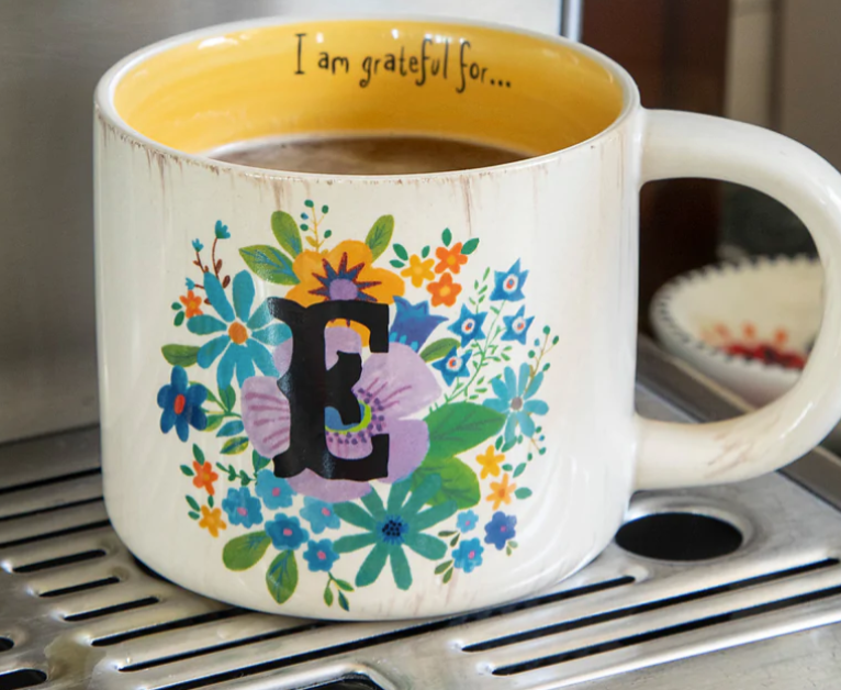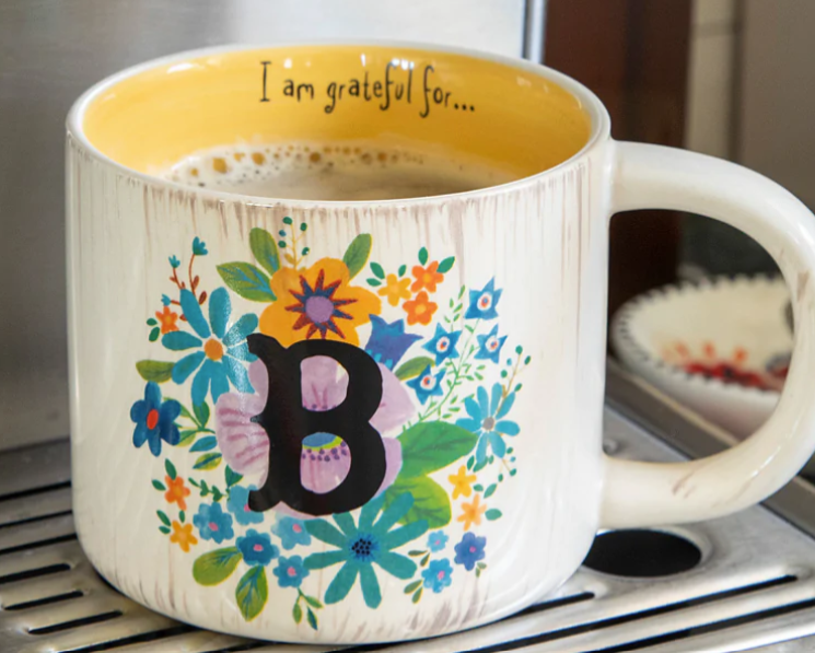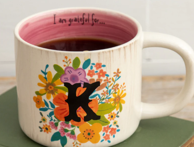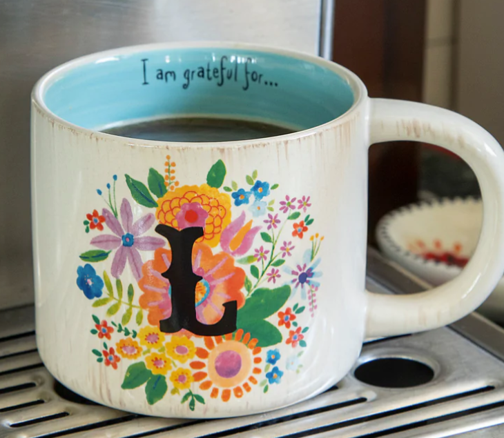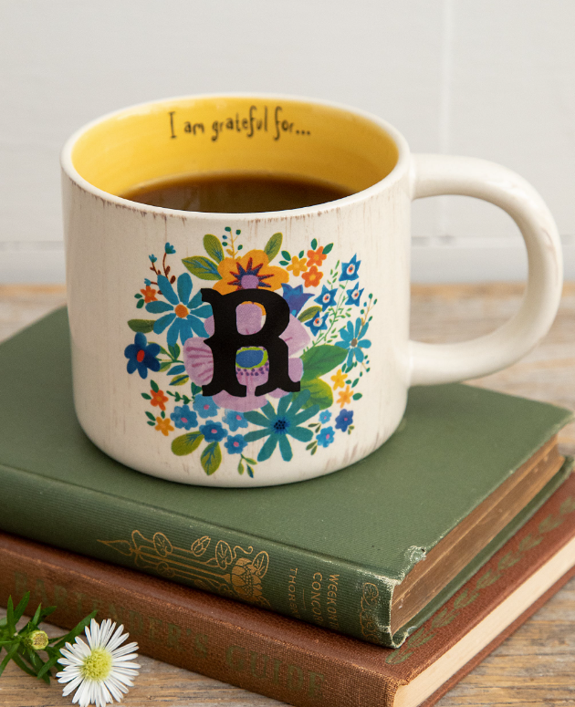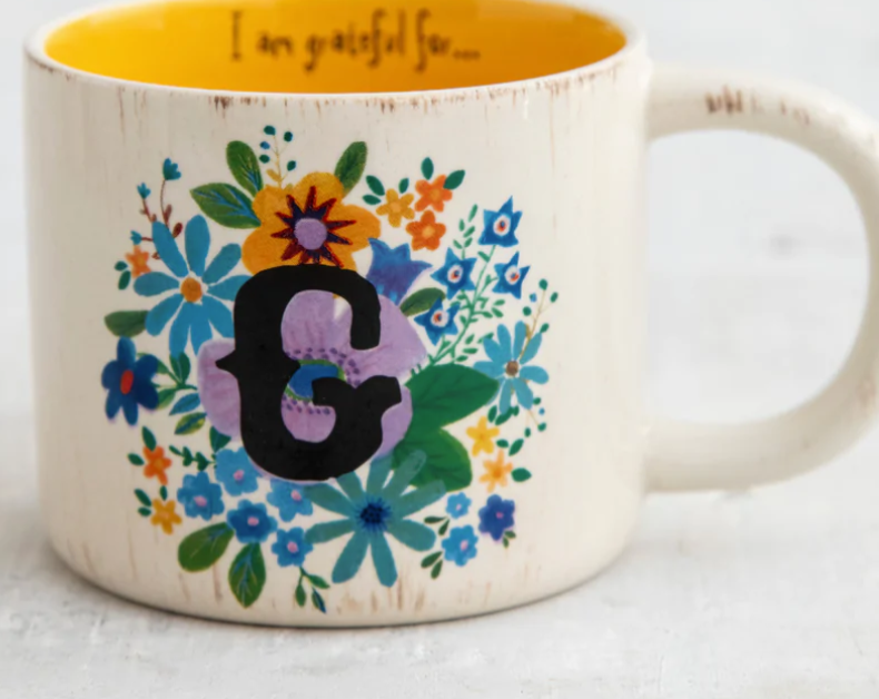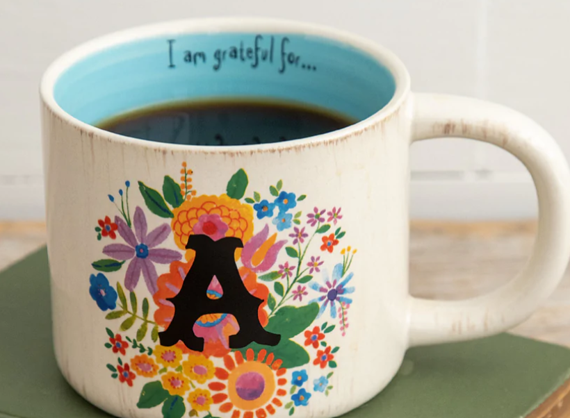 your morning with a smile...hand sculpted with the CUTEST design! It features original art and an initial letter, making it the perfect personalized gift for someone you love!