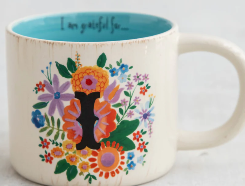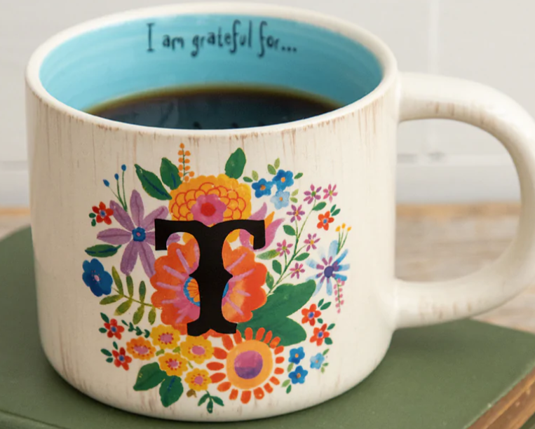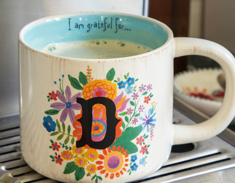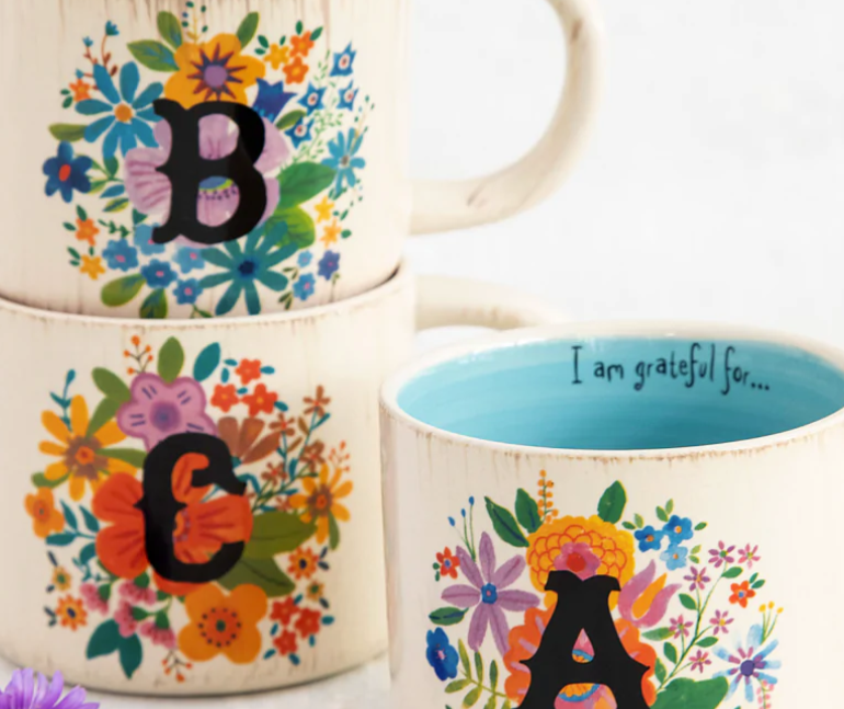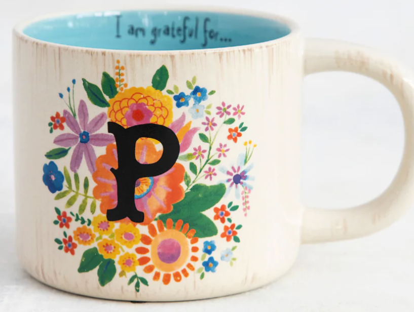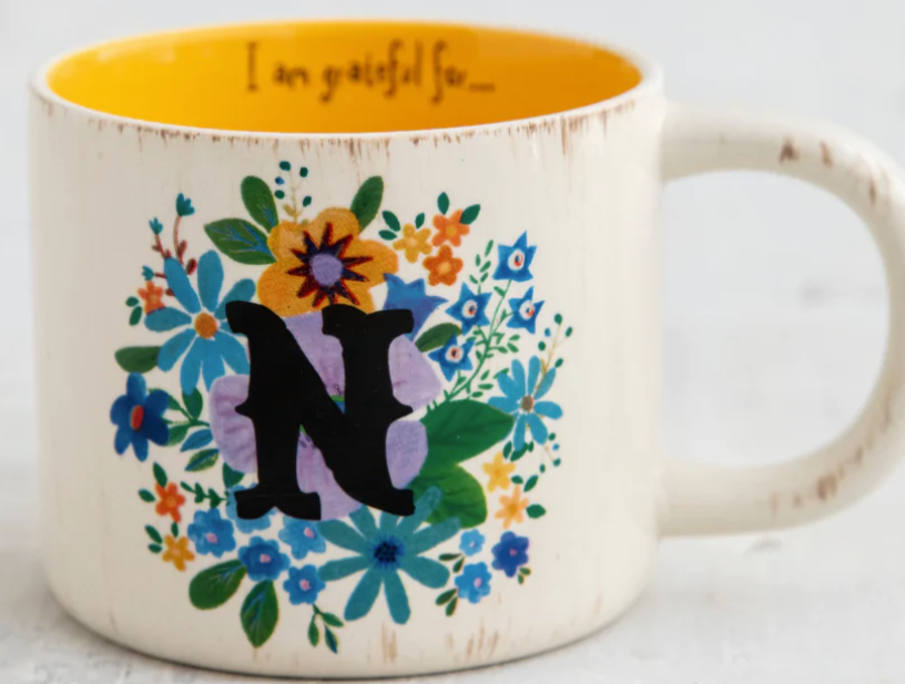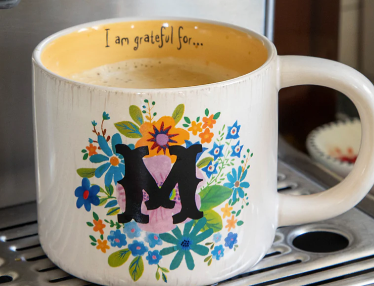your morning with a smile...hand sculpted with the CUTEST design! It features original art and an initial letter, making it the perfect personalized gift for someone you love!