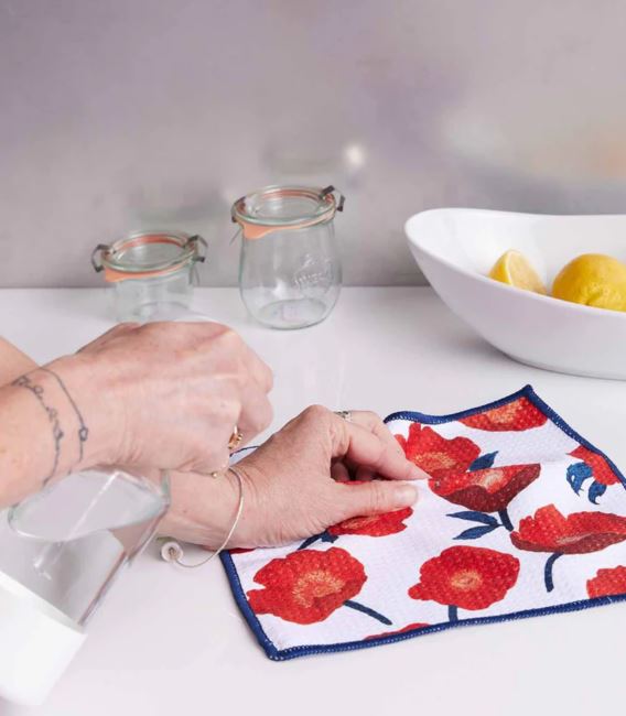 Uber-sustainable high-performance microfiber kitchen Dish Towels are made from 3 reused recycled plastic bottles. Mother Earth's best little helper!