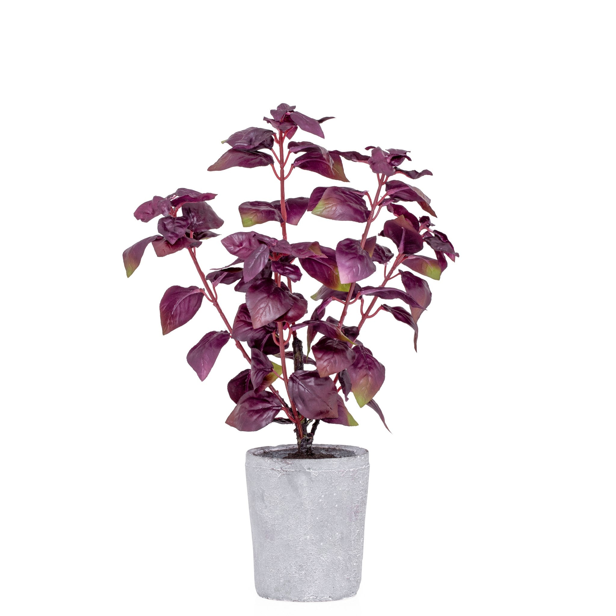 Provence Rustic Potted Faux Purple Basil Herb Plant