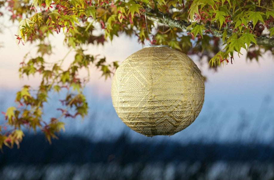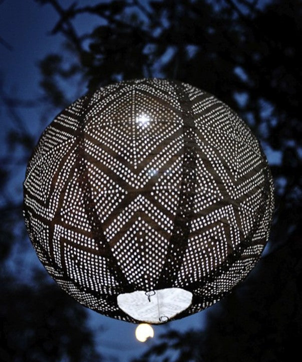 Inspired by ornately detailed lanterns found in Mediterranean bazaars, the Soji™ Stella Market lantern is bold, beautiful, and sophisticated. Created from ultra-durable Tyvek® and punched with an intricate diamond pattern, this lantern illuminates at dusk to cast captivating patterns of light each night.