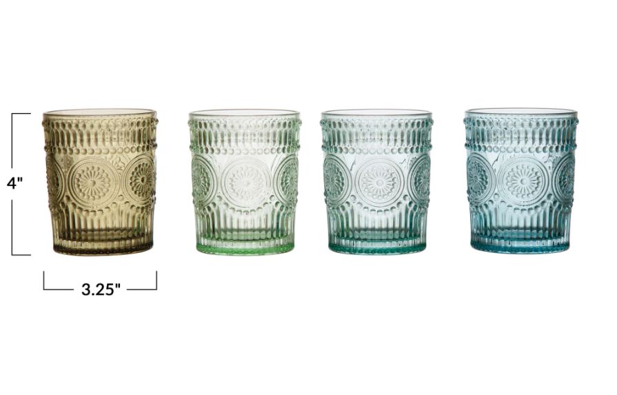 These delightful, embossed drinking glasses will be an enjoyable addition to your tableware. It is a unique glass that will be a charming addition to your table setting that is great for everyday use or entertaining and is an excellent choice to complement any kitchen decor style.