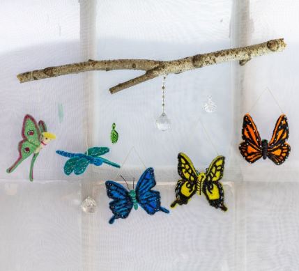 This lovely ornament is beautifully finished on both sides with detailed handwork including marbled felt and decorative beads. The hanging string is positioned so that it hangs as if in flight.