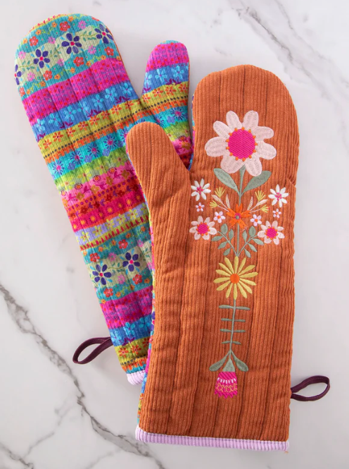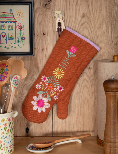 Its beautiful embroidered front & printed back makes it way better than a plain, boring oven mitt!