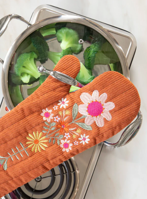 Rust Folk Flower Bake Happy Double-Sided Oven Mitt