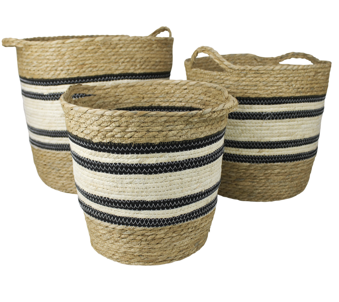 Storage elevated. All natural plant fibers are meticulously woven to create baskets for laundry, toys, towels, potted plants, and everything in between. Woven of grass and cotton.