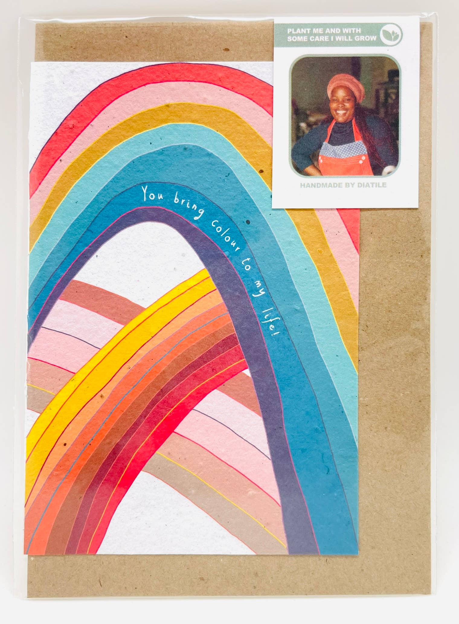 Text within rainbow reads "You bring color to my life!" (South African spelling of color)