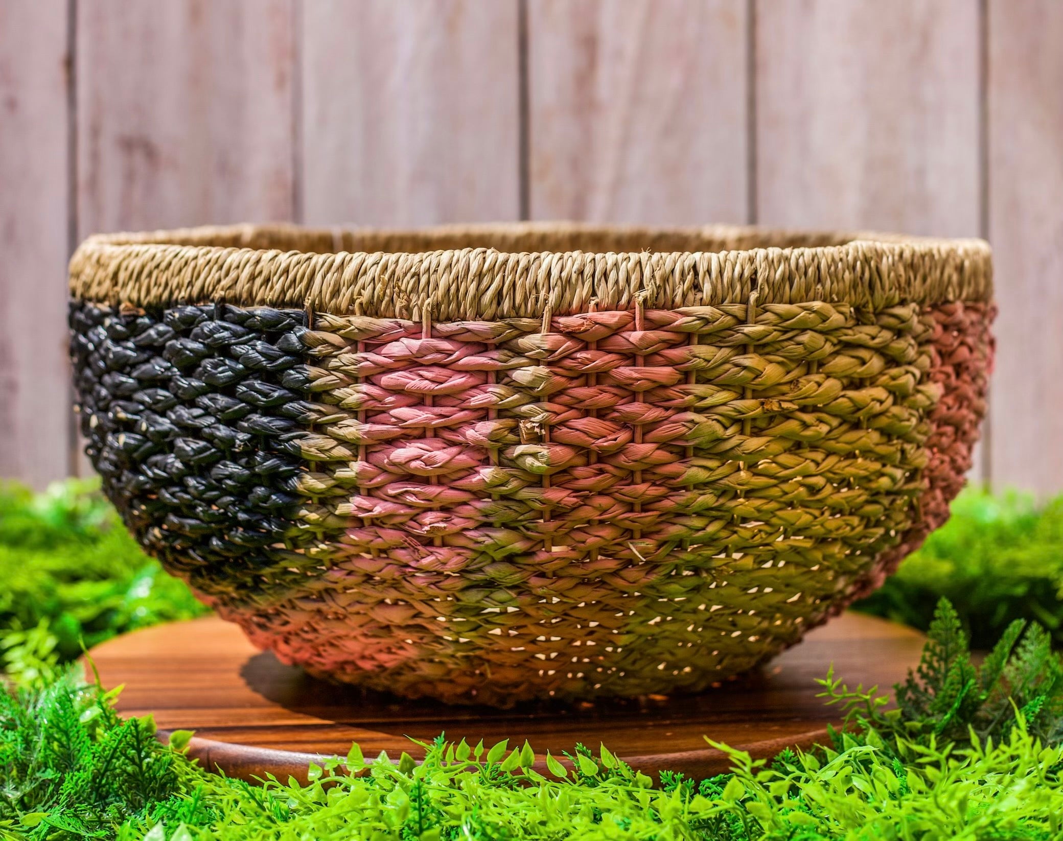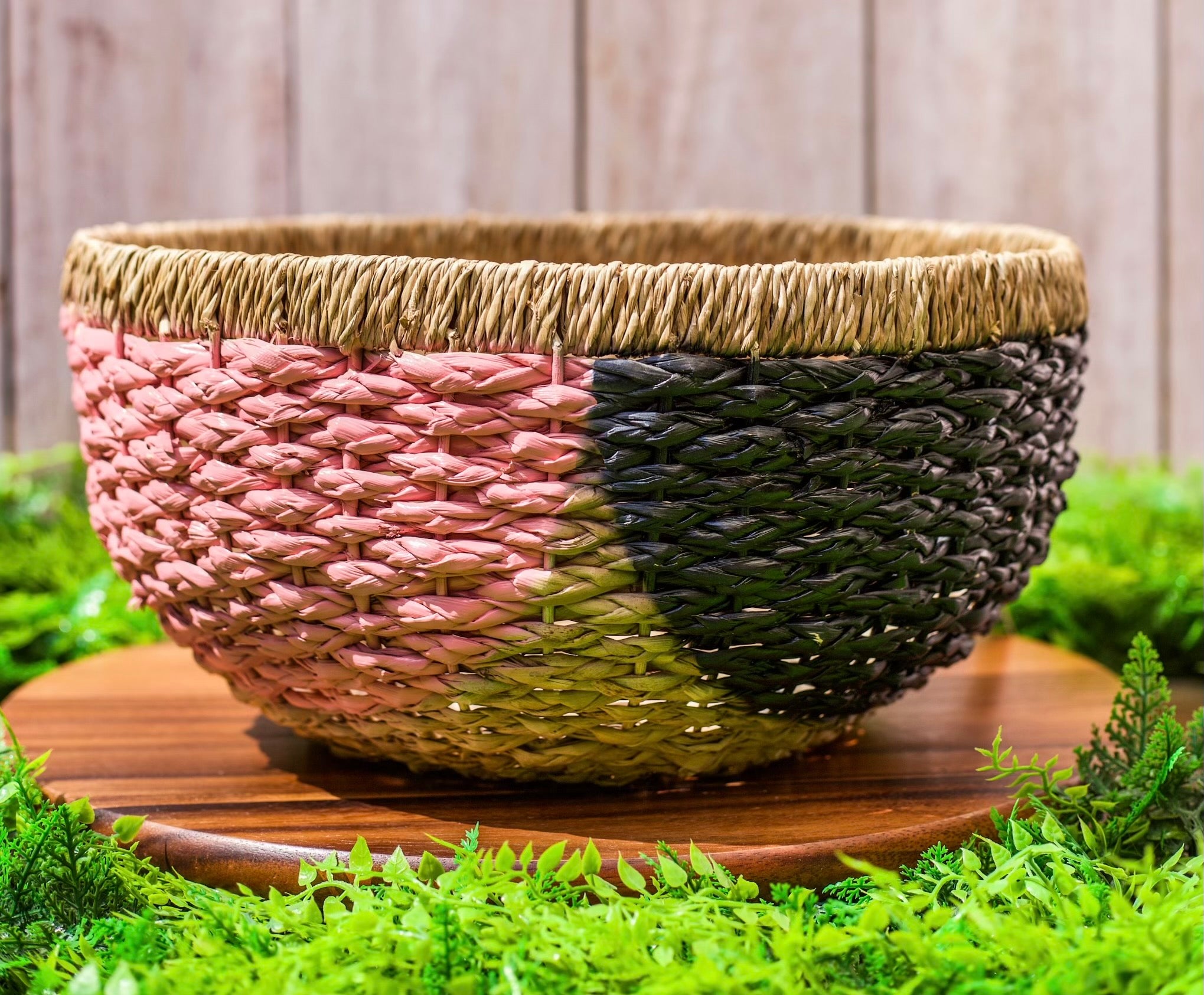 Hand-Painted Pink & Black Bangkuan Braided Baskets - 2 Sizes