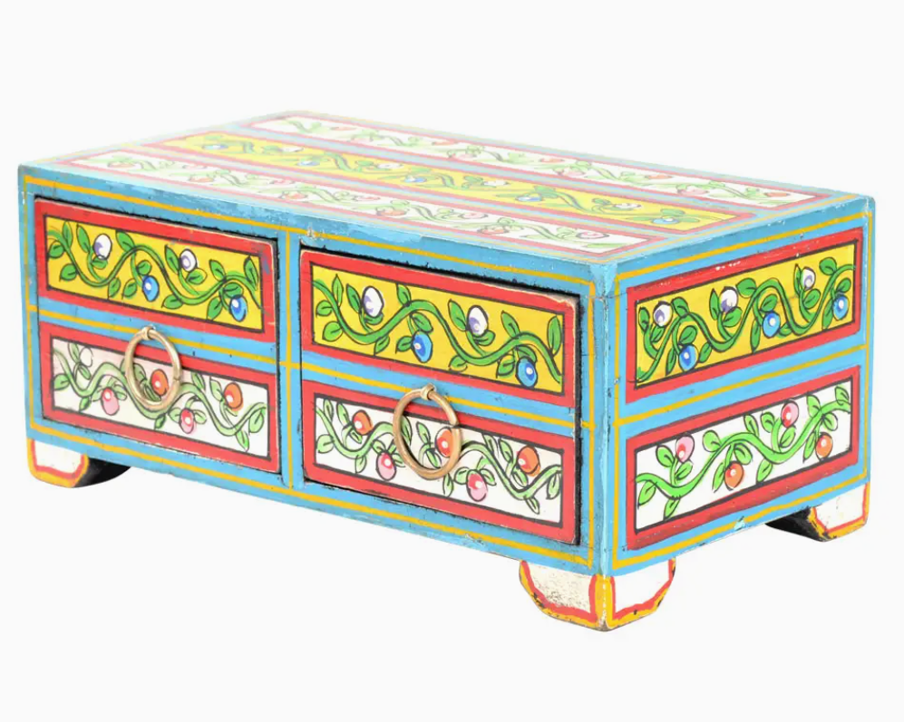 The Hand Painted Wooden Box with Drawers from Benjamin International is a decorative piece that seamlessly combines functionality and aesthetics. Measuring 7.5" x 5.5", this box is an ideal addition to any home decor. Crafted with care and precision, it reflects the brand's mission of connecting global artisans with consumers across the United States. This piece is an example of the fine, meaningful products that Benjamin International offers, inspired by traditional crafts from emerging markets like Nepal, Indonesia, and India.