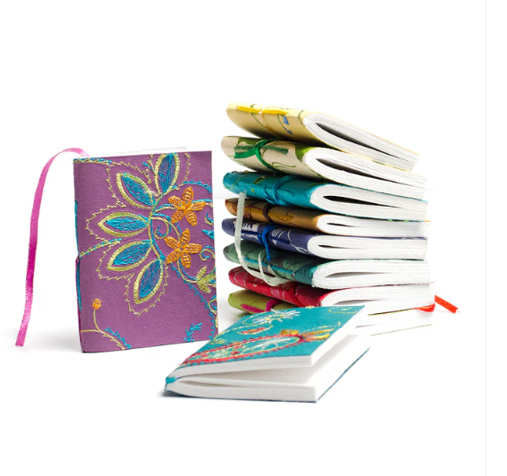 India's Asha Prabha designs petite journals ideal for writing inspiring verses, motivational quotes and personal insights. The covers are screen printed to resemble vintage court documents over which handsome elephants are at play. On the third journal, a crimson paisley beats with the heart of Indian traditions. Featuring a cotton cord, the journals are crafted with handmade paper and feature 48 pages each.